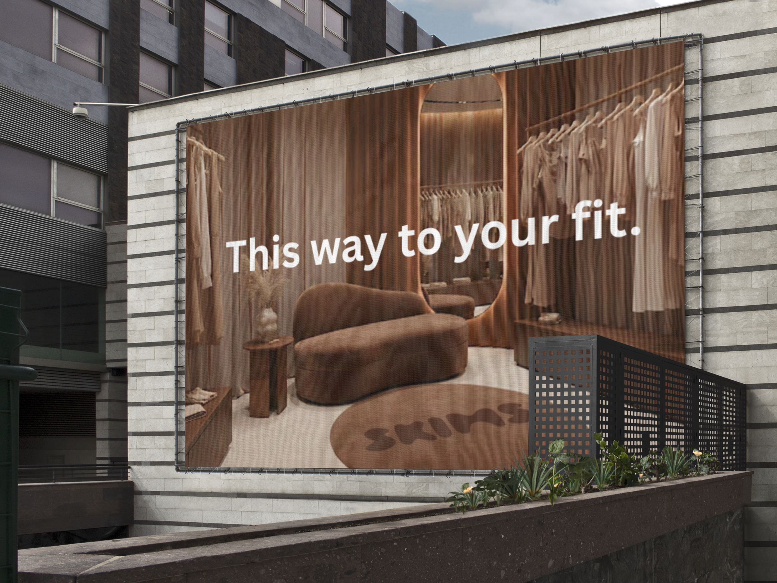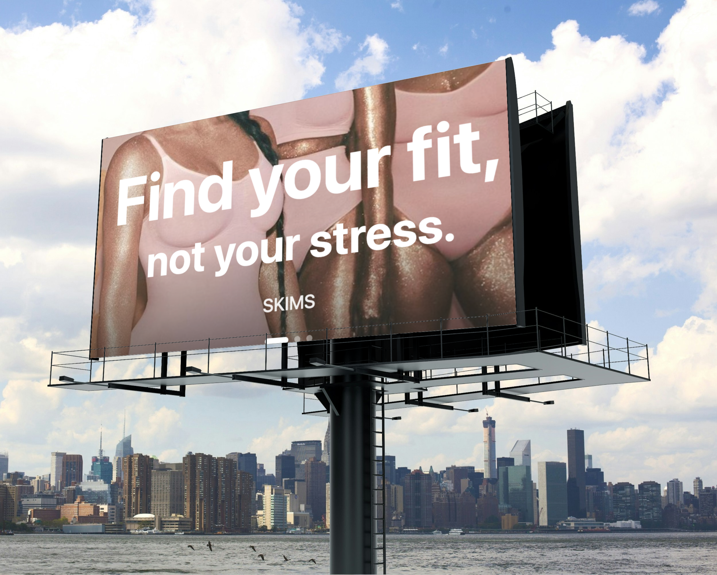 Less stress, more fit. These OOH billboards keep it simple, introducing the SKIMS Fit Quiz through clear, direct messaging that focuses on ease and reassurance. Placed in everyday environments, they invite people to stop guessing and start finding what works for them, using calm language and minimal visuals to make shapewear feel more approachable.
